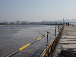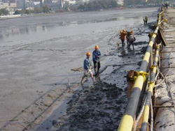 据中广网报道,围堰两边是截然不同的风景:一边是碧波荡漾,游船点点的秀丽西湖;一边是湖底黑色的淤泥。中间围堰有两米多宽,全部用沙袋垒成,两边用钢质构件固定,十分牢固。两侧水位的落差有三四米。抽干的湖底呈椭圆型,有几台小型水泵仍在工作,抽出从地下渗出的湖水。