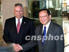 唐家璇与鲍威尔会谈 中国领导人随后会见鲍威尔