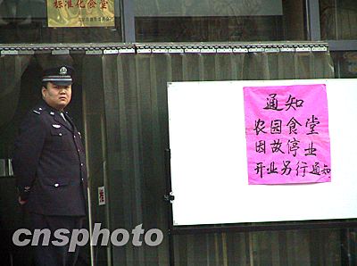 北京大学农园餐厅二月二十五日发生自制黑火药爆炸事故。图为由保安看守的农园餐厅外景。作者:武仲林