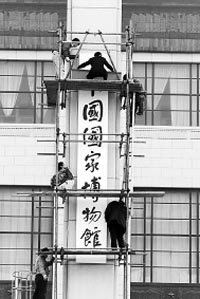 据国家文物局专电,2月28日上午10时,将隆重举行由江泽民主席题写的“中国国家博物馆”牌匾挂牌仪式。同时,中国国家博物馆的改扩建工程已经国务院批准立项。中国国家博物馆将建设成为一个与中国这样一个大国地位相称的,与中华民族悠久历史和灿烂文明相称的,与蓬勃发展的社会主义现代化事业相称的,与广大人民群众日益增长的精神文化需求相称的具有国际先进水平的博物馆。