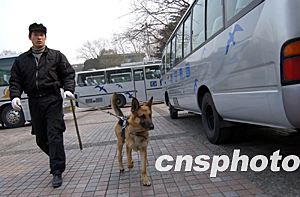二十八日,警察在全国政协委员驻地北京友谊宾馆加强安全保障工作,派出警犬对驻地的停车场、花园等地进行彻底搜查,确保安保工作万无一失。
