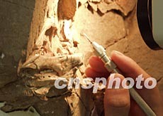 据介绍,这只小古角龙化石是吉大恐龙研究项目组于二00二年八月,对长春境内的白垩纪恐龙进行发掘时发现的。当时共获得了一百余块含恐龙化石的岩石,其中以这具恐龙化石保存最为完好。昝馆长表示,待修复工作完成后,博物馆准备将这具恐龙化石装架展出,届时它将是第一具从长春市出土的装架展出的恐龙化石。