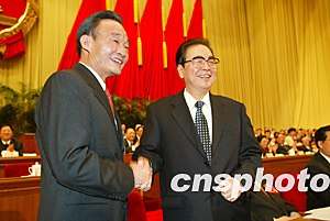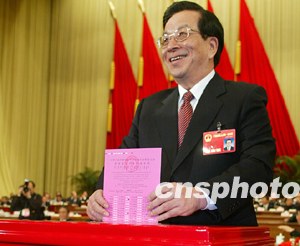 ——中共中央政治局常委吴邦国当选新一届全国人大常委会委员长。