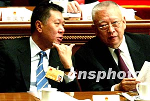 香港特别行政区行政长官董建华和澳门特别行政区行政长官何厚铧,十八日出席在北京举行的十届全国人大一次会议闭幕会。作者:郑萍萍