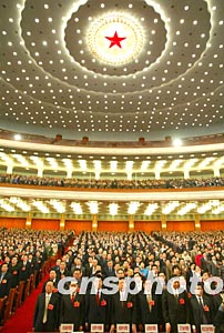 图:十届全国人大一次会议在国歌声中闭幕