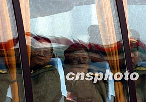 十届全国人大一次会议三月十八日闭幕,解放军人大代表们会后乘车离开时眺望北京天安门广场。作者:贾国荣