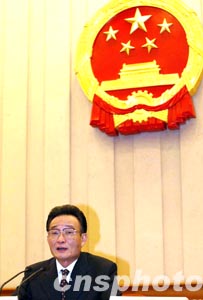 全国人大常委会委员长吴邦国,十九日在北京主持十届全国人大常委会一次会议。作者:满会乔