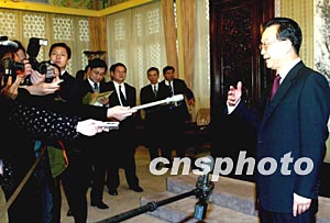 在回答记者们的提问后,温家宝关心地问记者们“你们拍摄好了吗。”