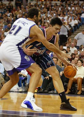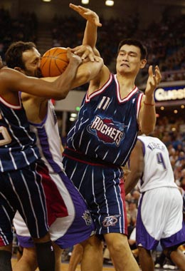 本场比赛姚明上场33分钟,得到本赛季第25次两双,11分和19个篮板球。