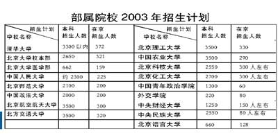 中新网3月30日电 据北京娱乐信报报道,二十所部属、市属高校今年在京招收的本科人数已经确定。今年,部属院校基本上都不扩招,市属高校则适当扩招。招生人数详见右表。