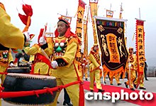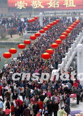 中新社郑州四月五日电(胡珂张坤)四月五日上午,二00三中国新郑“炎黄文化旅游节”拜祖大典在新郑市始祖山轩辕庙前隆重举行。来自日本、韩国、马来西亚、美国、香港、台湾等十多个国家和地区的华人华侨在这里焚香跪拜,寻根祭祖。
