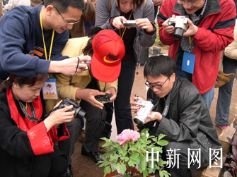 网络媒体记者聚焦洛阳牡丹。玉树 摄