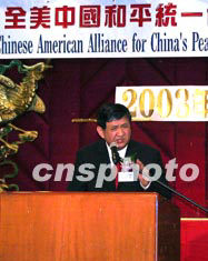 全美中国和平统一促进会联合会四月十六日晚在纽约华埠举行筹款餐会,会长程君复在致辞中呼吁海外华人团结起来推动“反独促统”。作者:赵海燕