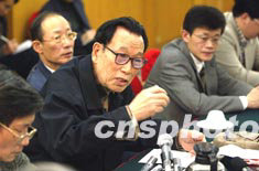 图为常务理事李家泉率先发言,展望海峡两岸关系。