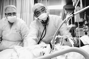 副院长、ICU科主任黎毅敏成了“抢险队”队员,整天奔波于各医院会诊。有一天,他一下子接了120多个电话,手机烧坏了,嗓门喊哑了。那天,他白天去了市内两家医院会诊,晚上9点又赶到江门抢救病人到凌晨4点,第二天一早又马不停蹄地赶回来准时上班。徐达远,ICU病房的年轻医生,已连续3个月没休假,为抢救病人曾48小时没合过眼。其间父亲心脏病突发住院动手术,他仅向科主任请了两小时假;年轻女医生何为群,连续彻夜不眠抢救与守护危重病人,当病人成功地脱离呼吸机时,她却因过度疲劳而感染疾病;潘瑶,呼研所护士长,一手将她拉扯大的奶奶在医院抢救,她却无法守护在身旁。奶奶不幸辞世,她强忍悲痛,抹干泪水,日夜忙碌在病房……