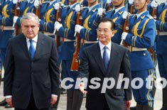 中新社北京四月二十五日电(记者姜知然)中国国务院总理温家宝二十五日在人民大会堂与法国总理拉法兰举行会谈时表示,拉法兰总理此次访华意义重大,对中法关系的深入发展将起到积极促进作用。