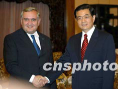 胡锦涛会见拉法兰 强调加强与欧盟对话经贸交流