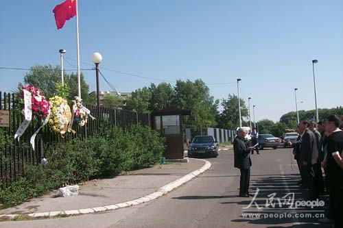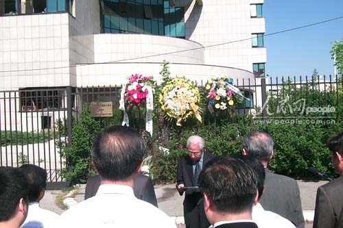 中新网5月7日电 人民网贝尔格莱德消息:中国驻塞尔维亚和黑山大使馆全体工作人员、中国驻塞黑全体新闻工作者和旅南华人华侨代表今天上午在中国驻南大使馆馆舍废墟前集会,沉痛哀悼在1999年美国轰炸中牺牲的3名中国烈士。