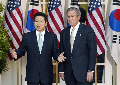 布什说,这次会谈表明美韩之间的友谊是牢固的。他还表示,他们讨论了朝鲜半岛无核化的必要性,他也向卢武铉保证,美国会继续争取以和平方式解决这场危机。