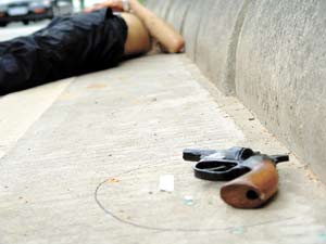 中新网5月18日电 昨日凌晨5时,驾驶着一辆黑色皇冠轿车,四名亡命歹徒携带两把手枪和三把马刀,从深圳布吉镇出发,经平湖至光明农场一路疯狂行抢。昨日凌晨7时30分,在宝安区观光公路育新学校路段,正在实施抢劫的歹徒,遭遇宝安便衣民警伏击,经过约5公里的飞车追逐和激烈的枪战后,一名歹徒被当场击毙,3名歹徒被警方抓获———