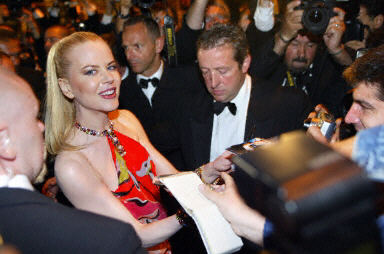 戛纳影节参赛影片《道格镇》女主角妮可-基德曼为影迷签名。她是第75届奥斯卡最佳女主角。