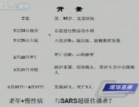 专家根据一个非典病人病例进行分析指出,根据病人背景资料显示,该病人是一位超级非典传播者,该病人发病初期由于年龄过高并伴有其他病症,故其非典病症被忽略。由此也说明老年人如感染非典更容易成为病毒传播者。