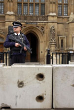 自9.11事件发生以来,英国警方就加强了对英国国会大厦的警戒程度,荷枪实弹的武装警察终日守卫在国会大厦的主要出口。英国上议院主席日前表示,在目前的政治环境下,对英国国会大厦的安全问题不能有丝毫的松懈思想。他呼吁全伦敦市民都应该加强对潜在恐怖袭击的警惕性,如果市民一旦发现任何可疑迹象,他们应该马上向伦敦警方报告。(春风)