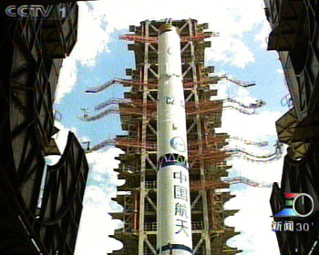 按预定发射计划,25日零时34分,“长征三号甲”运载火箭托举着“北斗一号”导航定位卫星成功升空。20分钟后,星箭分离。根据西安卫星测控中心实时传来的测控数据,卫星准确进入预定轨道。