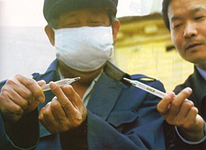 村里将有关SARS病症和预防的知识印刷下来,分三次挨家挨户发放。村干部把这种宣传材料叫做“明白纸”。村里还统一购买了一批5斤一桶的过氧乙酸,每户发放一桶,人口多的发两桶,让村民自行消毒。