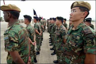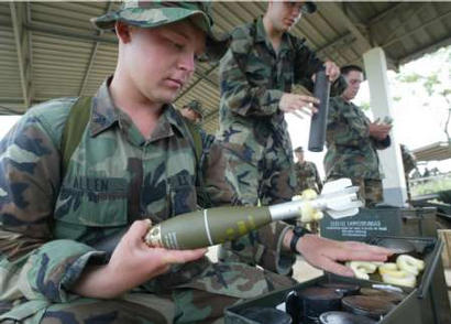(三)向其盟国展示武器装备,为美国军火商推销武器做广告。如果说,战场是美国军火商最大的武器推销场,那么,演习场就是美国军火商的第二大武器推销场。海湾战争让美国军火商挣足了钞票,科索沃战争又让美国军火商们大捞了一把,战争已经成为美国兜售武器的最佳时机,这似乎已成为美国屡试不爽的法宝。然而,在没有战争的和平时期,演习场就成了美国最好的武器推销场。近几年,亚太一些国家为实现军队现代化投入了巨资,这样一个难得的军火出售机会,美国是绝不会放过的。通过“金色眼镜蛇”演习美国将向其盟国展示其武器装备的优越性能,以引起这些国家的浓厚兴趣,为美国军火商在亚太军火市场占有更大的份额打下基础。(闻新芳)
