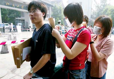 据北京娱乐信报报道,记者昨天在北大南门看到,这里戒备森严,保卫部负责维持南门外秩序,查验学生证以及《返校通知》、《返校健康登记表》等证件,学生家长亲友一律被阻止在校门外。返