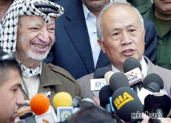 王世杰说,这次去巴勒斯坦见到了阿拉法特主席,也见到了阿巴斯总理。阿拉法特现在被困在拉马拉的官邸,行动不自由,我想由于阳光少,运动少,他看上去脸色有些苍白,但是他的身体还是很健康,特别是他在谈话的时候思路很敏捷,也很清晰,他也很自信。