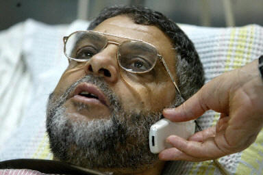 组图:受伤的哈马斯发言人兰提斯在医院治疗