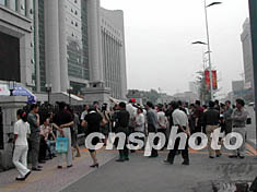 六月十一日上午,杨斌案在沈阳市中级人民法院开庭审理,引起各界广泛关注。据悉,此案的庭审将进行两到三天。图为法庭外关注的人群。作者:罗冰