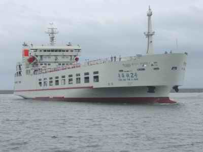 据了解,“铁二号”从设计到造型、从长相到身材,几乎和“铁一号”没有什么差异。总长度一百六十五点四米,宽二十二点六米,排水量一万二千四百吨,载车重量四千二百吨,主甲板可以载货运列车车厢四十节或客运列车十八节、旅客一千三百六十人。