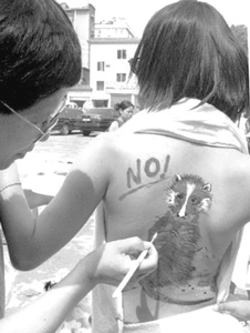 问题是,如今的人体彩绘,已不满足于在艺术殿堂里,而是在室外在大庭广众之下大行其道,其目的也不是要普及什么艺术文化,所图的或许只有一个动机,那就是为商家推销商品。这就值得认真分析了。