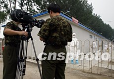 解放军小汤山医院将在20日送走最后一批SARS康复患者后结束光荣使命,18日军方摄影师在隔离区认真记录该医院的最后时刻。中新社记者:任晨鸣