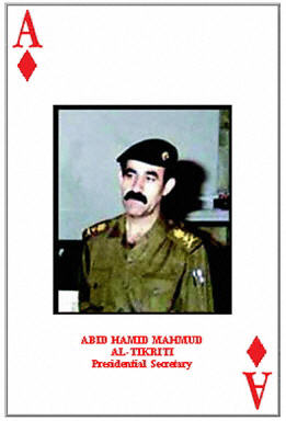 据法新社报道,中央司令部发表声明说:“马穆德将军现已被联军拘押。他周一在伊拉克境内被联军抓获。”他在美国所列的伊拉克前政权要员通缉名单上排名第4,是扑克牌通缉令中的方块A。