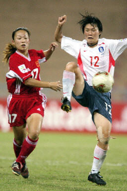 中新网北京6月19日电 在十九日晚间于曼谷进行的一场女足亚洲杯的半决赛中,凭借着白洁的梅开二度和孙雯的锦上添花,中国女足以三比一力克韩国队,顺利进军决赛。