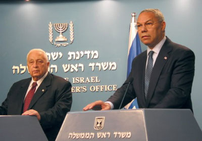 鲍威尔在会晤后与沙龙举行的联合记者招待会上表示,巴勒斯坦方面不能仅仅通过与巴激进组织达成停火协议来停止暴力活动,而应该摧毁他们制造暴力的能力。鲍威尔还指责巴勒斯坦伊斯兰抵抗运动(哈马斯)是“和平的敌人”。