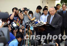 世界卫生组织6月23日将香港剔除出疫区,特首董建华随即到淘大花园举行记者会,并向在SARS疫症中死难者哀悼。 中新社记者 洪少葵