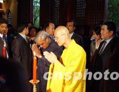 印度总理瓦杰帕伊二十五日在河南洛阳参观“中国第一古刹”白马寺。作者:何晓聪