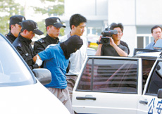 中新网6月26日电 据新闻晨报报道,发生在上海的“6·23”特大抢劫杀害台商案昨天宣布告破,犯罪嫌疑人黄利刚和程亮于昨日凌晨在江苏睢宁被擒获,此时距离案发仅41小时。昨天下午3时10分,带着头套的犯罪嫌疑人黄利刚、程亮被押解至上海闵行公安分局。