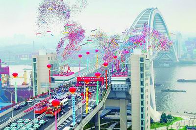 中共中央政治局委员、上海市委书记陈良宇出席大桥建成通车仪式,并宣布“上海卢浦大桥通车!”