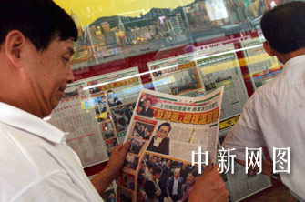 香港媒体关注国务院总理温家宝访港。香港媒体关注中国国务院总理温家宝访港,29日报刊杂志头条刊登新闻,市民驻足浏览。中新社记者洪少葵摄