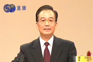 温家宝在庆祝香港回归祖国六周年酒会上发表讲话时,作如上表示。