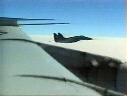 在五角大楼公布的录像带中,人们可以看到一名朝鲜战斗机飞行员在他的座舱内打手势,显然是要求美军侦察机离开这一空域。