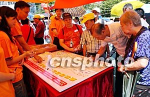 香港庆祝回归六周年在维园举办大型庆祝活动,吸引众多市民参与。图为市民在留言板上签名纪念。洪少葵 摄