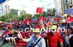 7月1日,市民以轻松愉快的心情,在维园举办大型庆祝香港回归祖国活动中挥舞国旗,纪念香港回归祖国。洪少葵 摄