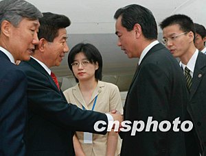 据悉,中国国家主席胡锦涛将于今天晚些时候与卢武铉总统举行会谈,这是中韩两国新一届领导人的首次会晤。两国领导人将就进一步加强双边关系,维护朝鲜半岛的和平、稳定与发展,以及国际形势等问题深入交换意见。